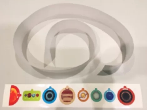 建立模型:八大行星有着自己的轨道。通过对折的方式找到位置并标记出来,这样就形成了太阳系的简单模型。为了方便观察,我们设计了星体贴纸,在折痕处贴上对应贴纸,就可以很直观地观测模型。通过观察纸带上星体的位置,就可以思考星球与太阳系的位置关系。